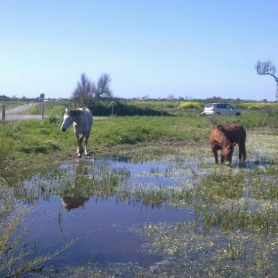 En plein coeur des marais rétais ils sont, comme toujours, accompagnées des aigrettes et hérons garde boeuf qui aiment camper sur leurs dos.